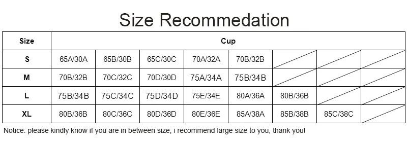 The bra is smaller one size than normal size you wear, please refer to size recommendation to choose size, or contact seller, thank you!