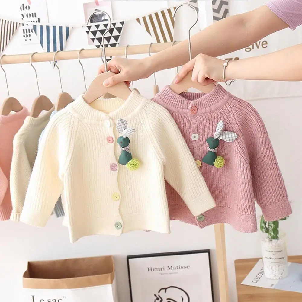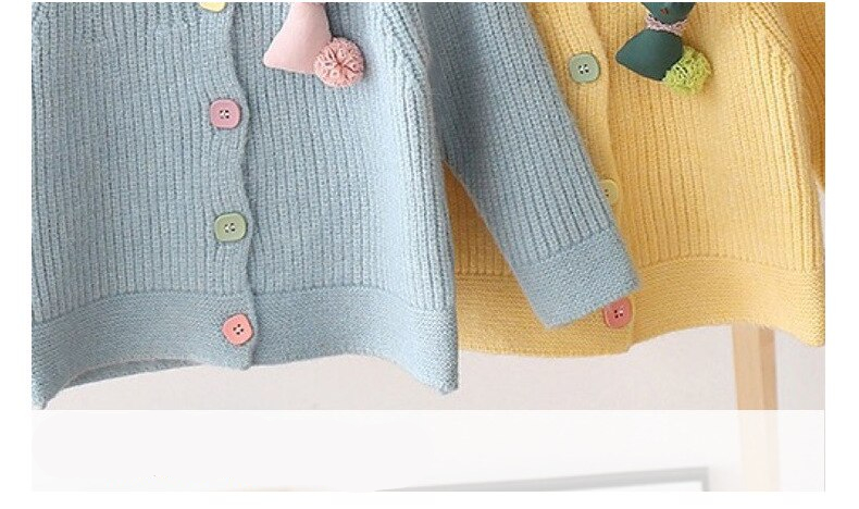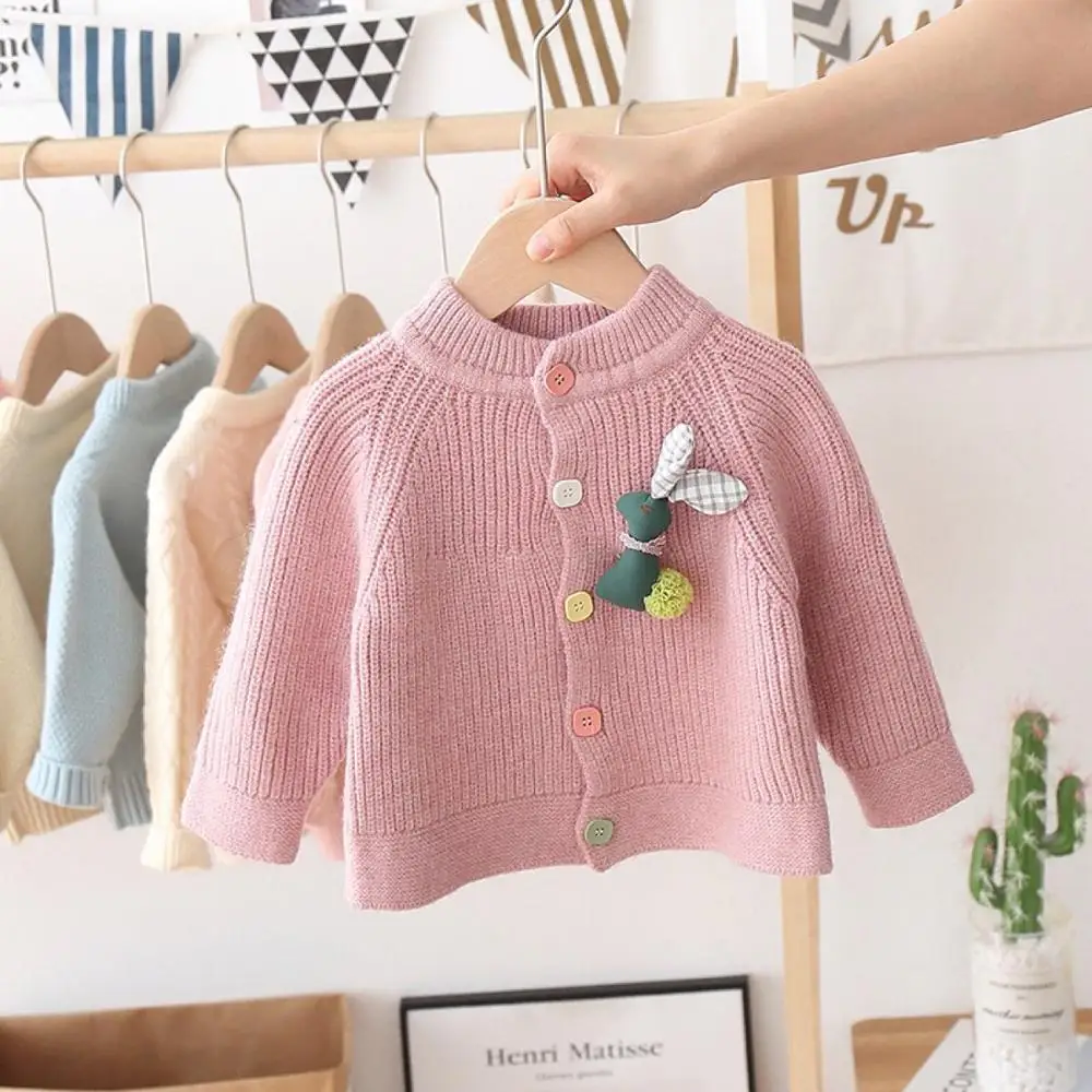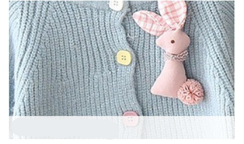 Rabbit Knitwear Cardigan Sweater has a cute rabbit design with colorful buttons to create a great mood. The rabbit puppet will be attached to the cardigan to make it sweeter.