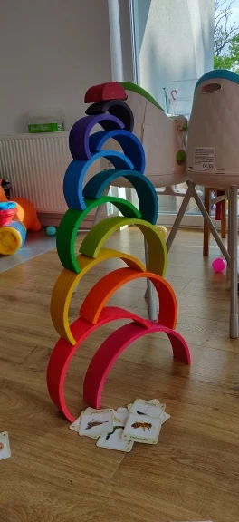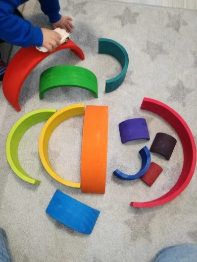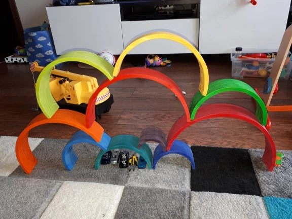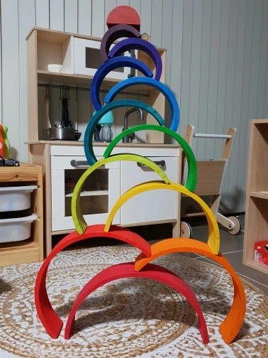 The wooden toy is perfect for developing imagination, creativity, and mobility. It includes 12 pieces in big size. It is delivered from Spain