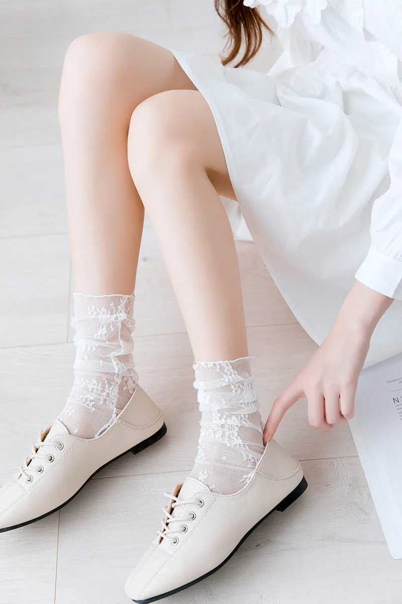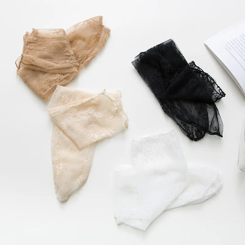 Retro Lace Crystal Silk Women Girl Socks