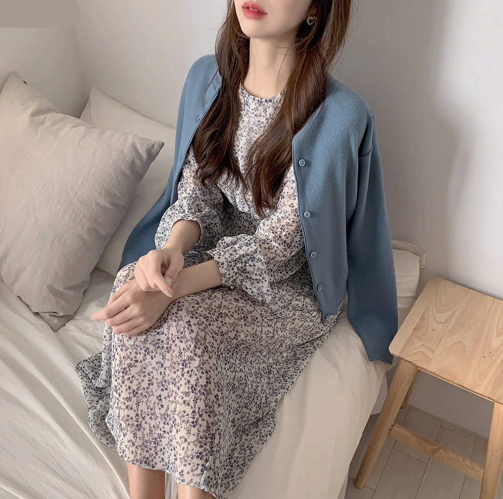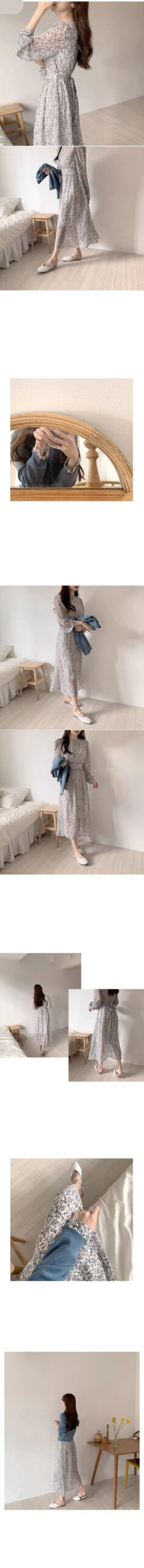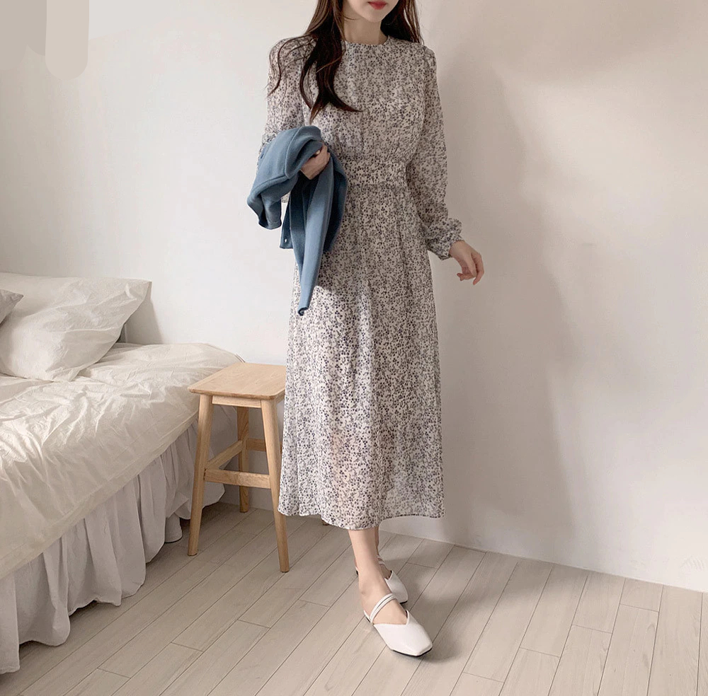 Chic Korean Clothes Design Autumn Spring Womens Long Sleeve O Neck Elegant Lady Floral Printed Retro Vintage Long Dress 00921