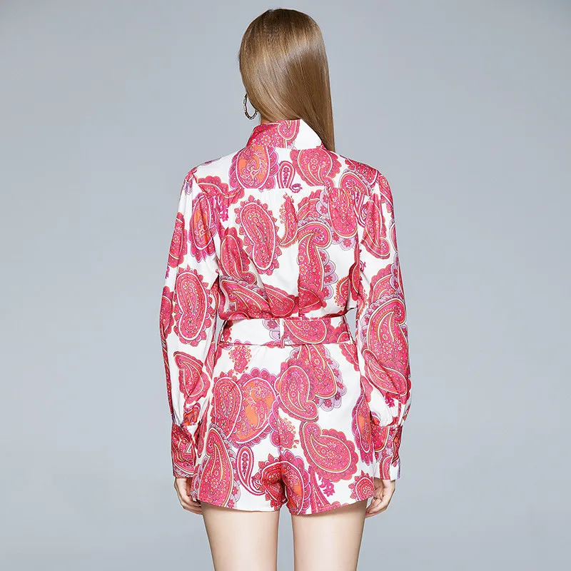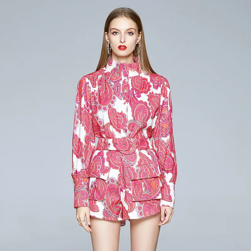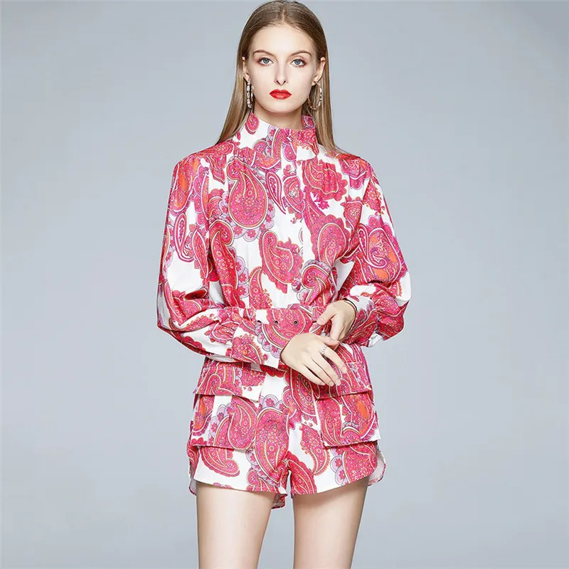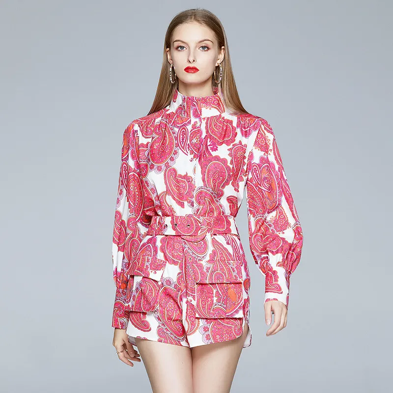 The Runway Retro Floral Pink Set has Lantern Sleeves and a charme de fou and a vintage style. It includes the Blouse + Belt Shorts Set