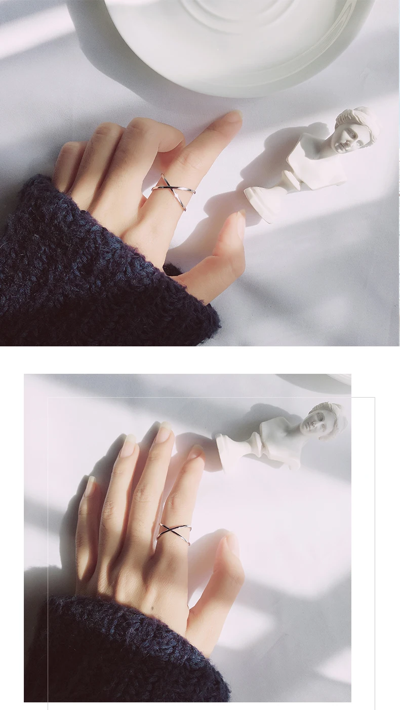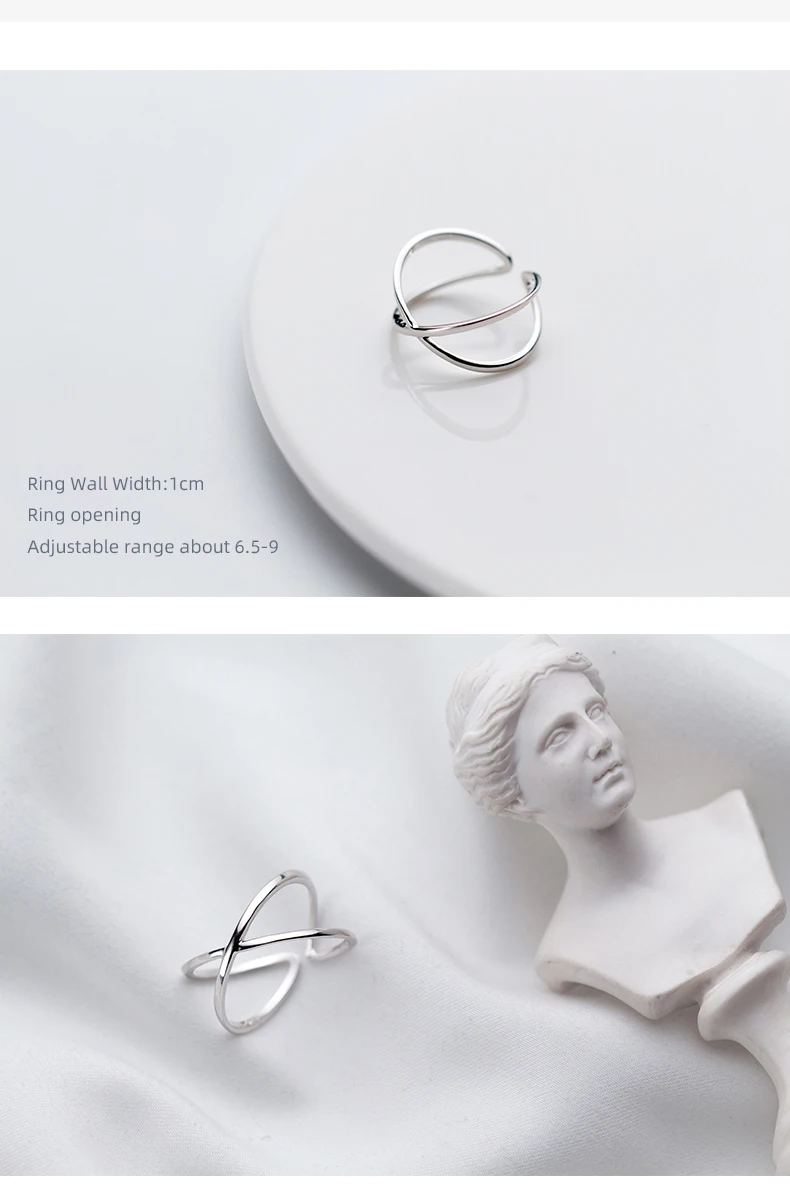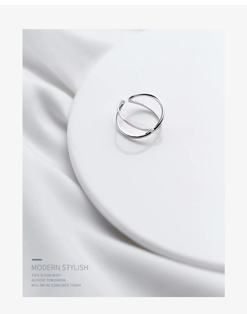 Silver Sterling Glossy Simple Letter Adjustable Ring for Women