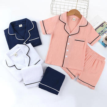 Summer Kids Cotton Linen Short Sleeve Pajama Set