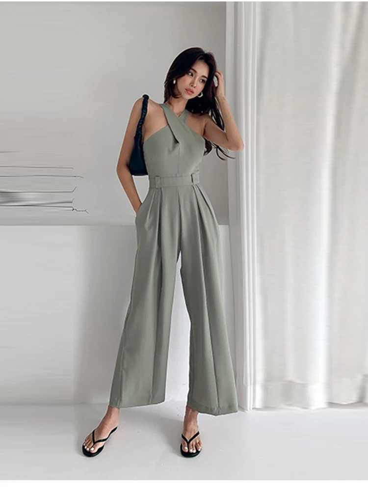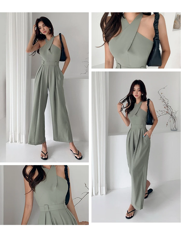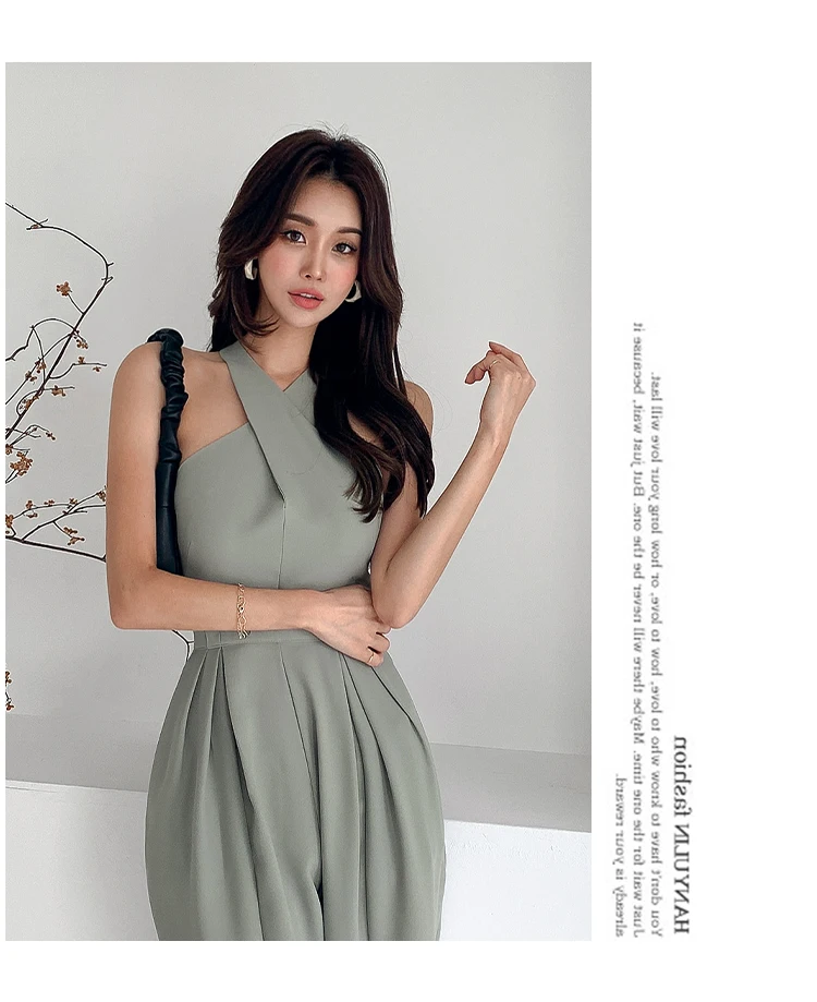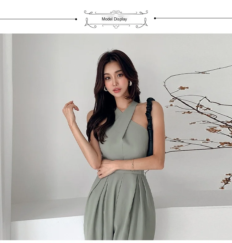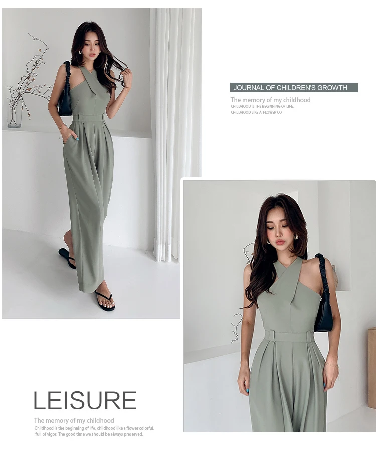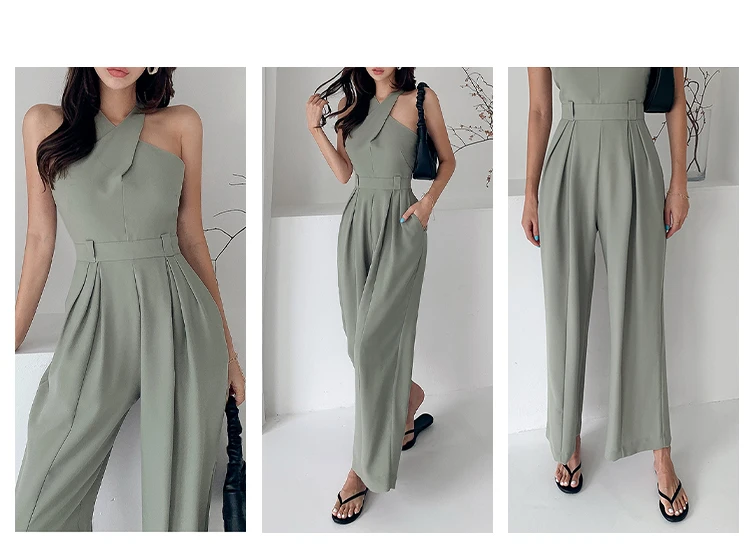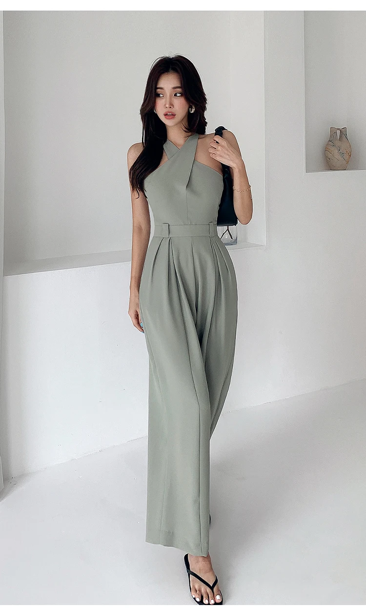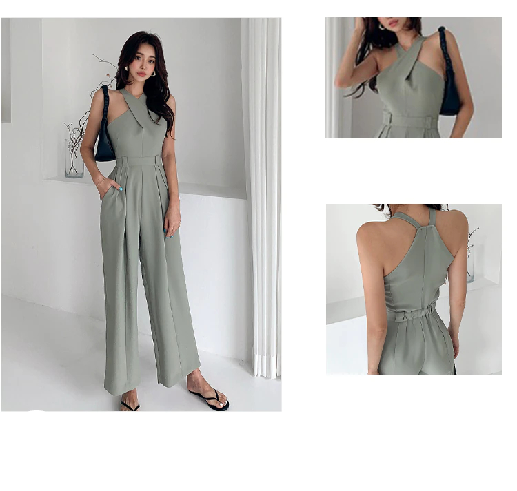 Sleeveless Jade Rompers is the choice for an elegant casual look. Its geometric shape that unveils the body and covers it with style proves its femininity. Its jade color adds more classy touch. The jade is the color of the year.