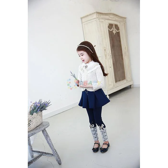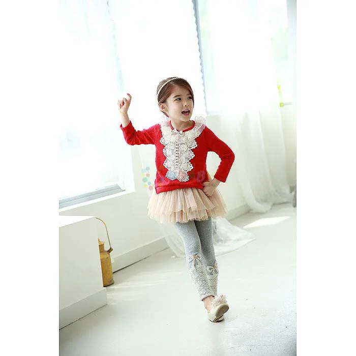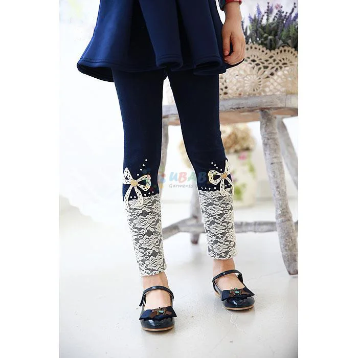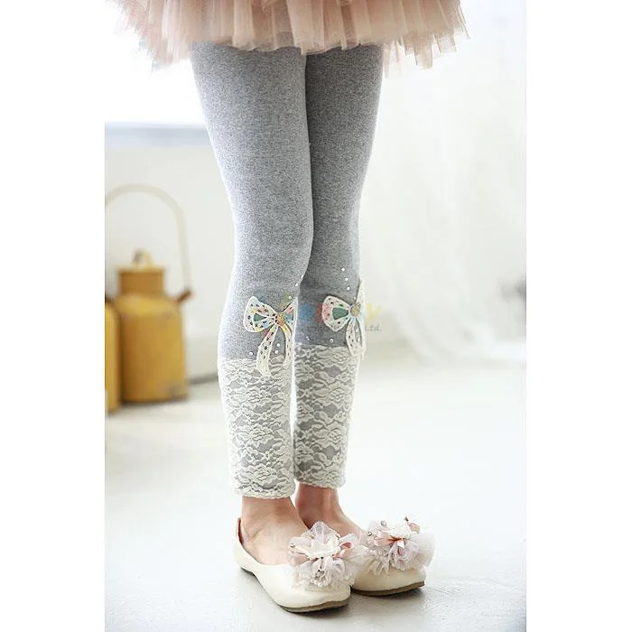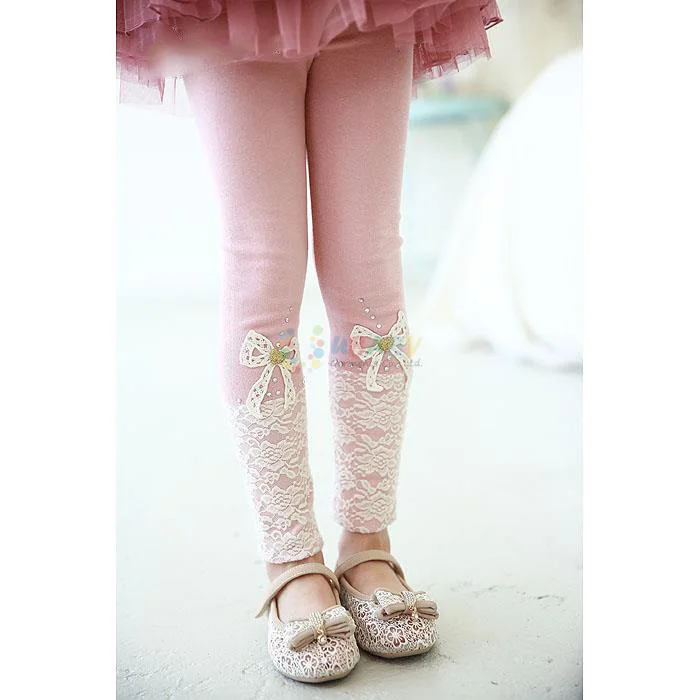 Cute leggings for girls with bows and lace. It can perfectly match a dress or blouse.