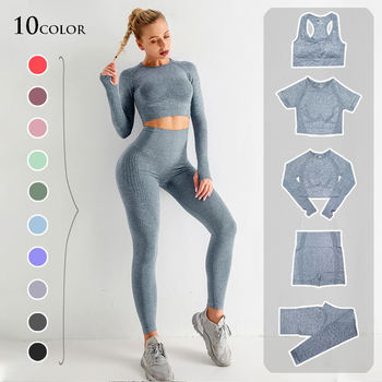 2/3/5PCS High Waisted Crop Top And Leggings Seamless Workout Set