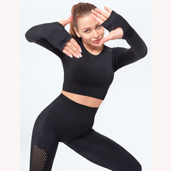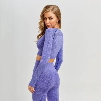 2 PC Long Sleeve Cropped Seamless Top And Leggings Set
