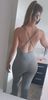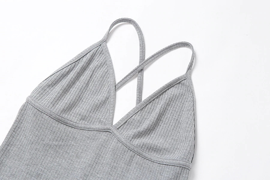 It has a profound V plunge and back straps. Easy to wear and very comfy.