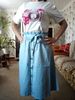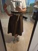 This skirt is wide but not as pleated as it appears, the color is more opaque than it looks in the picture, I asked for a green and arrived as burnt olive green, including a divine belt, but it doesn't fit that of an average Latin woman's body. For a height of 1.65 mt it is left of a perfect midi length and has a very cute fall around from my hips of 110 cm,. Fabric and sewing quality is excellent