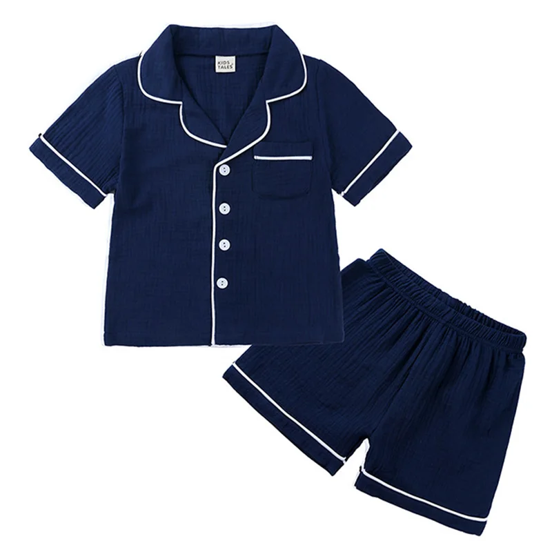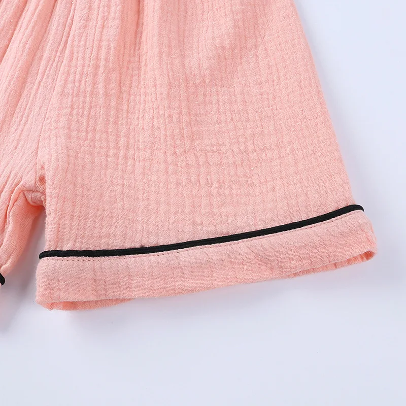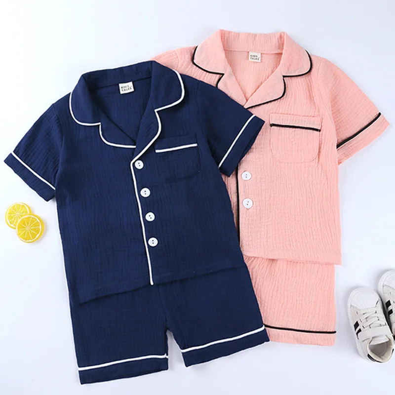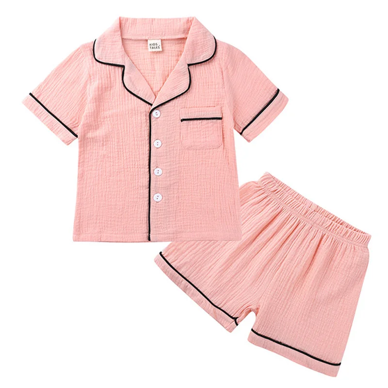 Summer Kids Cotton Linen Short Sleeve Pajama Set