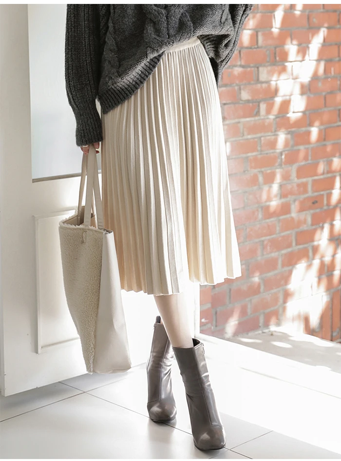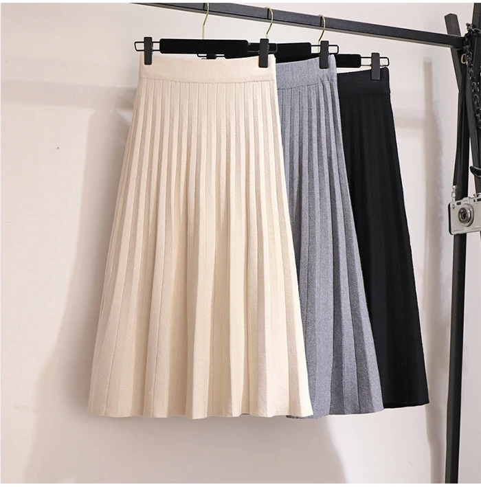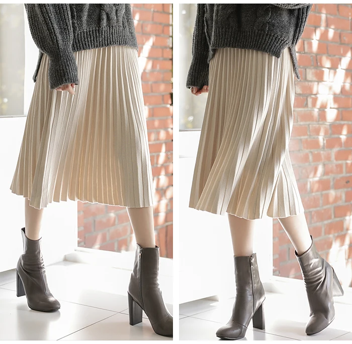 Sunny Elegant Midi Pleated Knitted Skirt is a perfect and chic way to show your style! It can be worn in all seasons, mostly in spring and autumn! It suits any age, but mainly 20 – 55 years ladies.