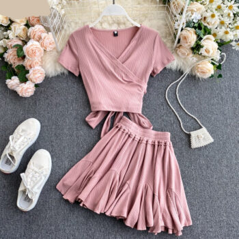 Two Piece Bandage Crop Top and Mini Skirt Set