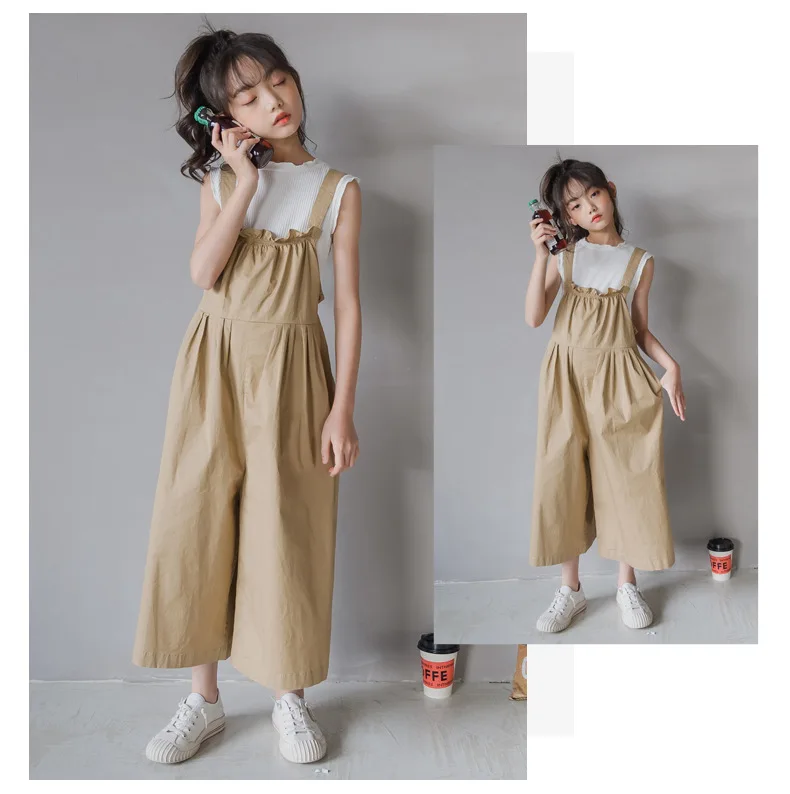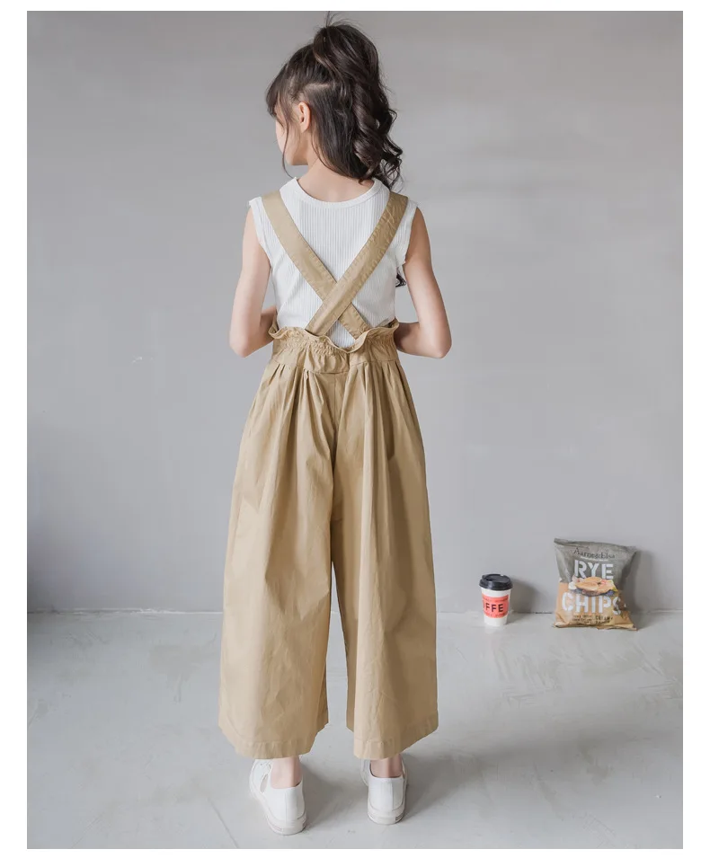 Two Piece Set Casual Vest and Overalls Wide Leg Pants