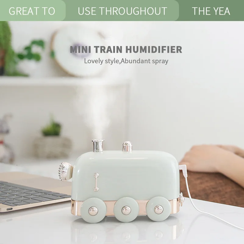 Very cool humidifier Took for a gift, delighted This charm is highlighted and makes the sounds of the steam engine for the first minute when turned on Sufficiently capacious, enough hour for 4 exactly When unpacking lost the spring, thought defective, be careful, instruction to help Oil did not add, surpassing flew from behind the essential oil instantly, with this I will not risk In general, the thing is fire