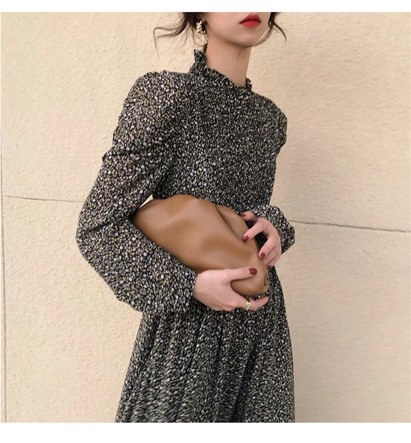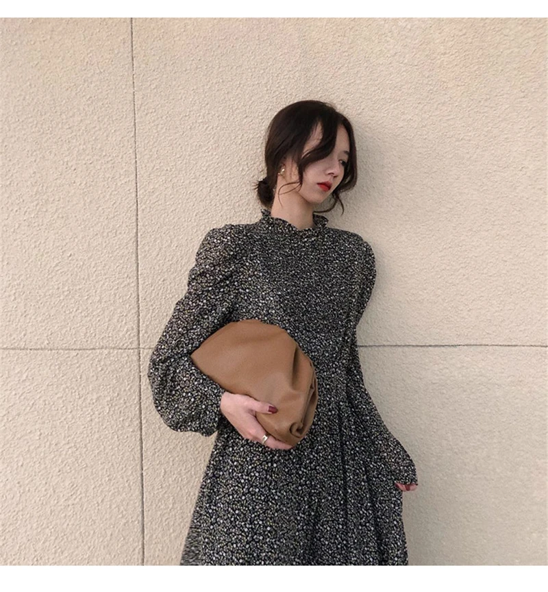 Vintage Ruched Sleeve A-line Dress is the fresh new look for you! Cozy, smooth with a touch of vintage, this dress is for every season. Its long length, floral pattern, stand collar, and ruched sleeves create a sort of bohemian style.