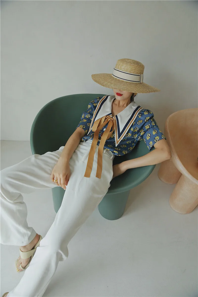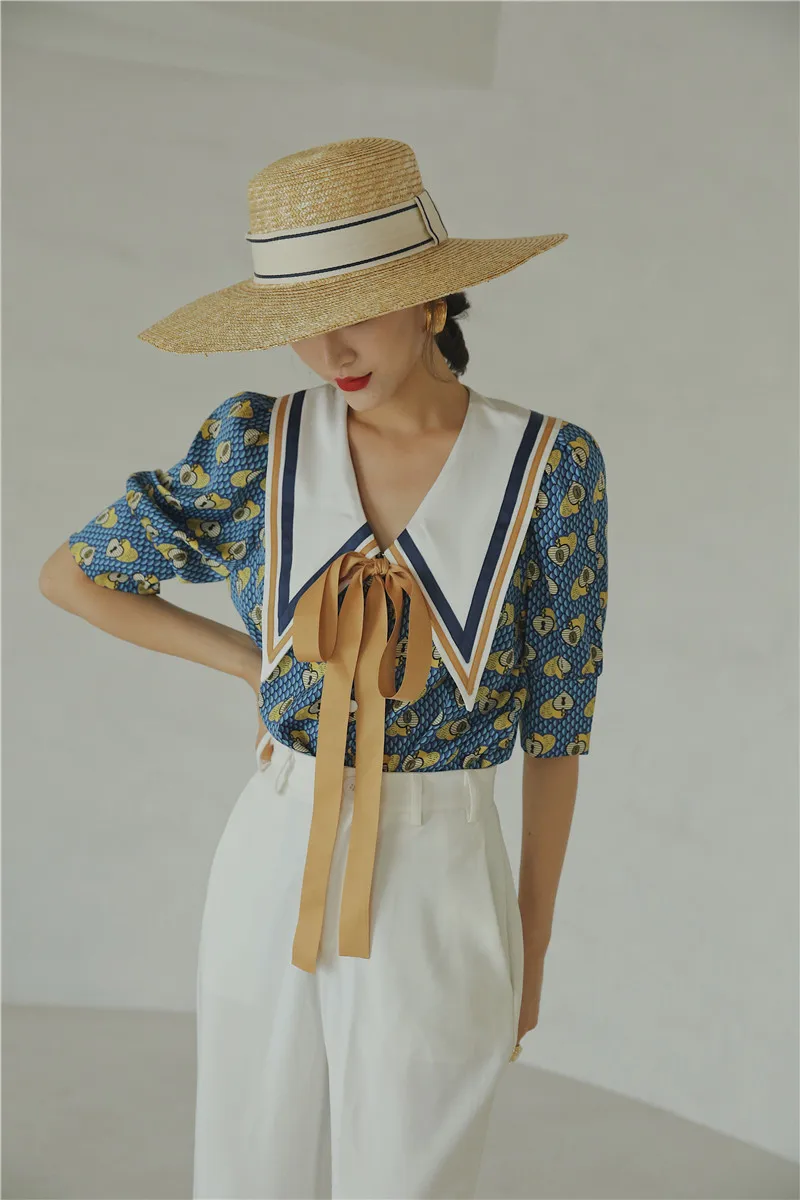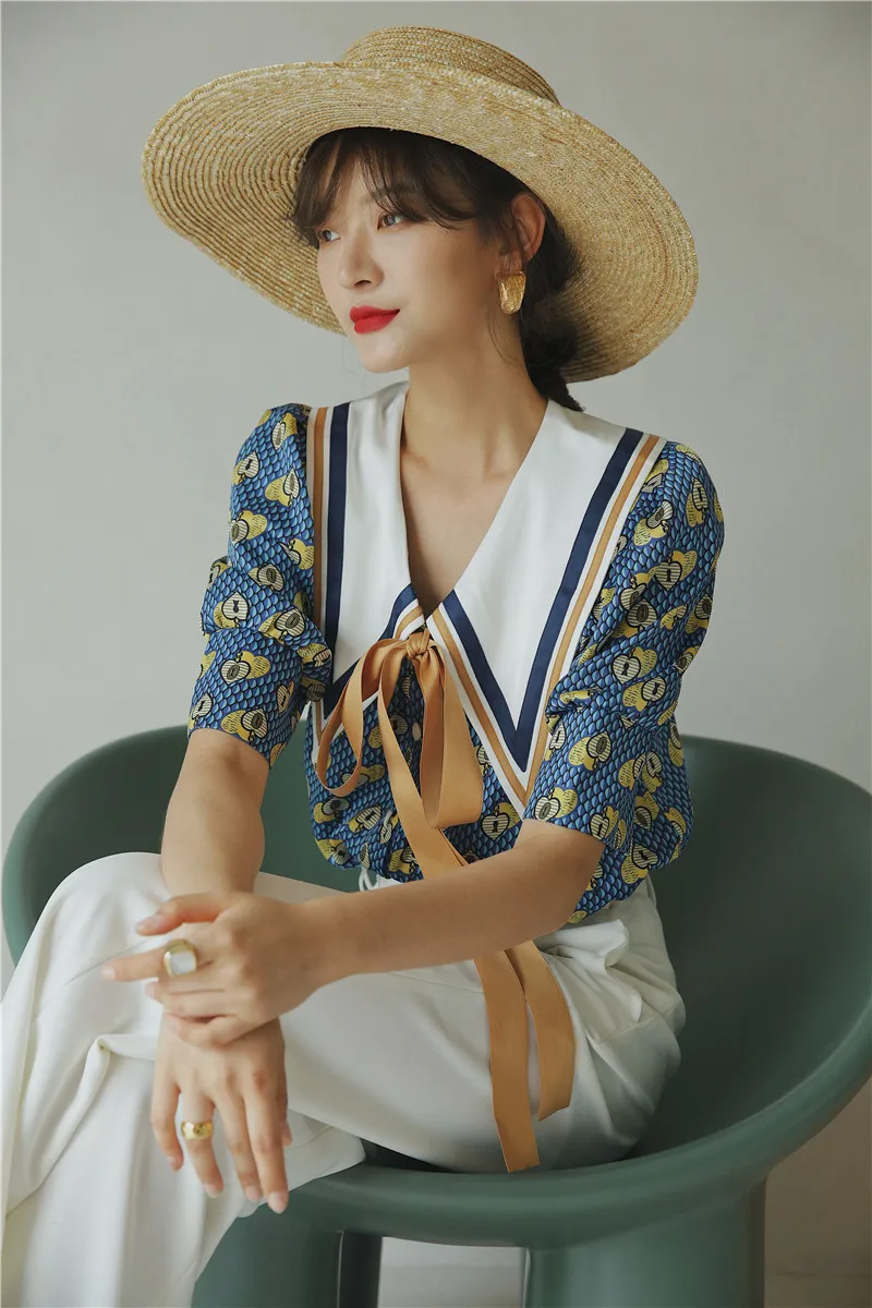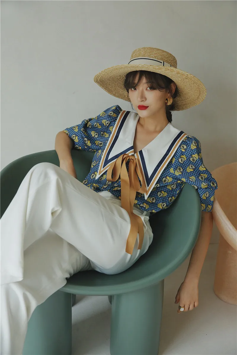 Vintage Summer Blue Collar Tie Shirt is a work of art for you. Such a Boheme style and so chic that you can wear it wherever you want and on any occasion!