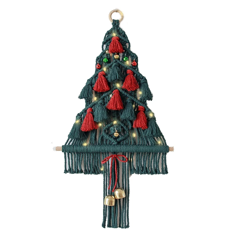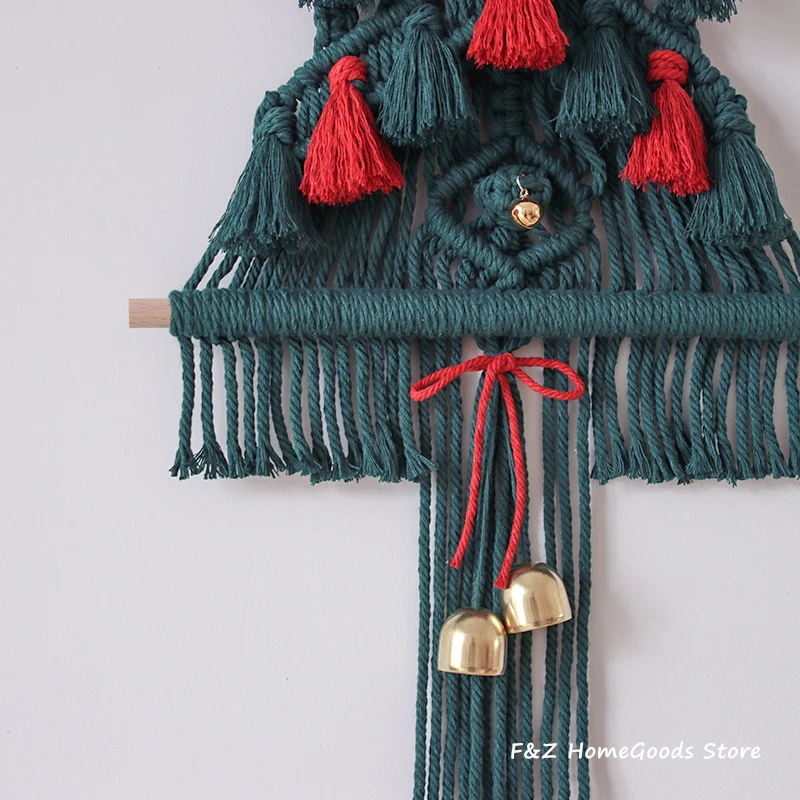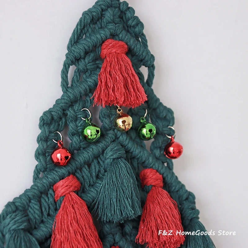 1. Item: Macrame Christmas Tree Wall Hanging Tapestry Tassels Bells Handwoven Boho Decoration Bohemian Decor For Living Room Kids Gift