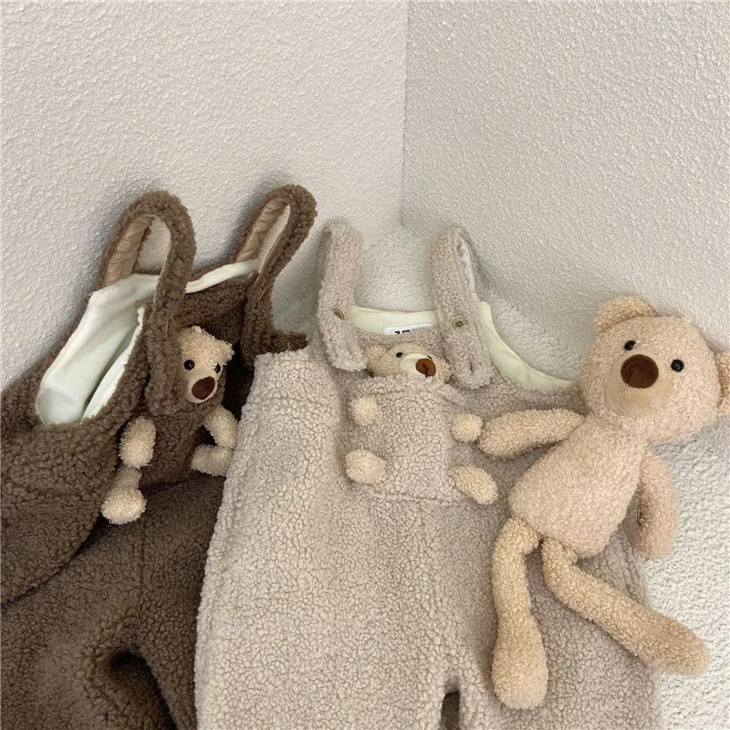 High-quality fleece jumpsuit for girls and boys with a cute bear pocket. It’s so chic that winter will love to see you wear them!