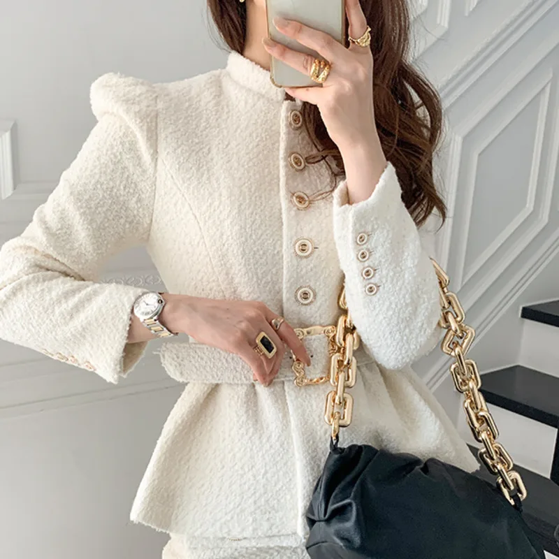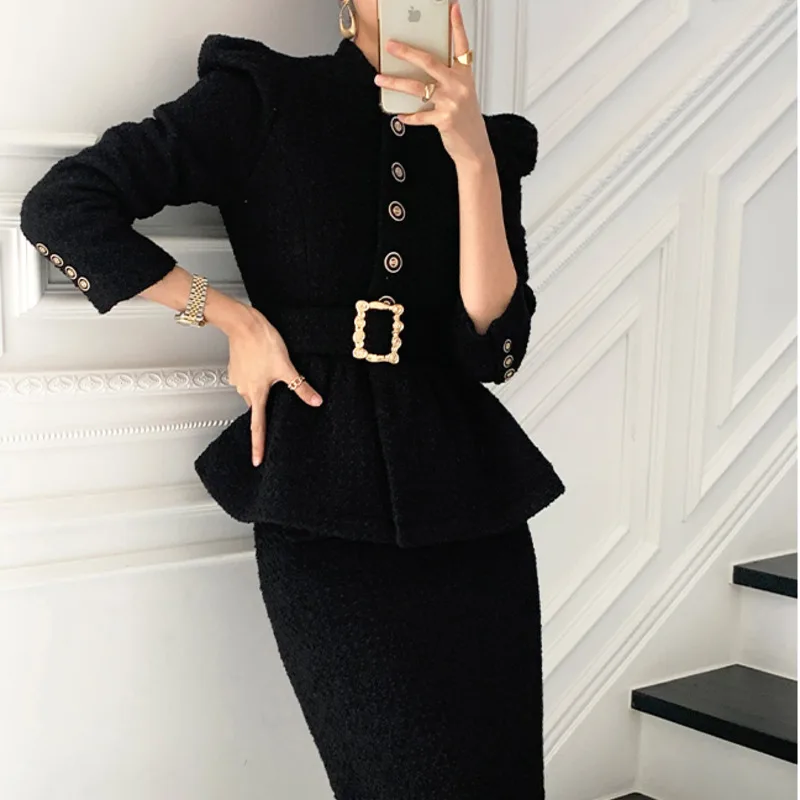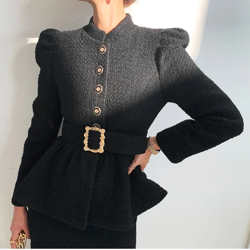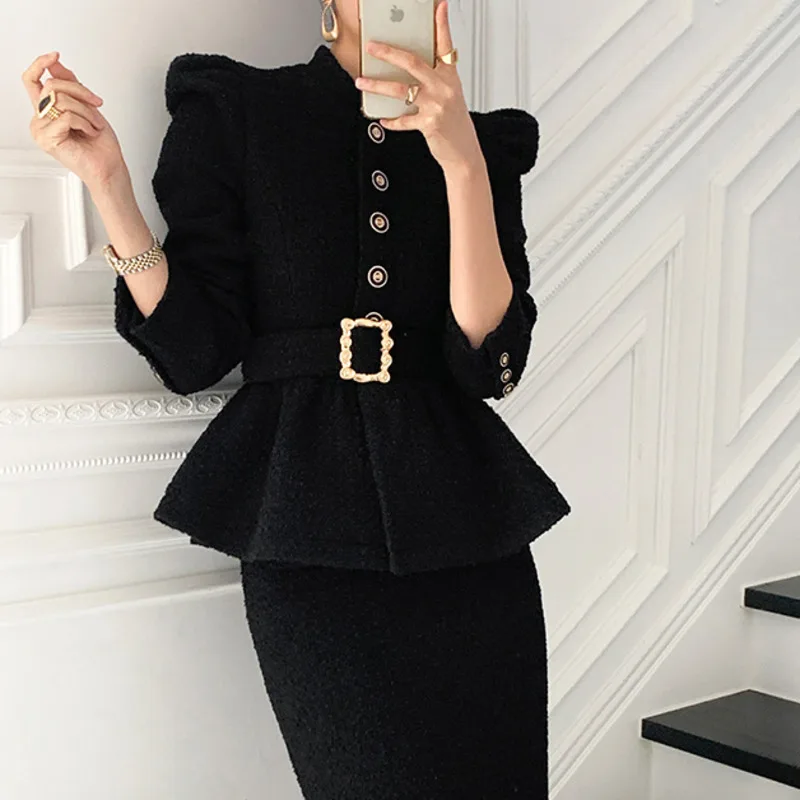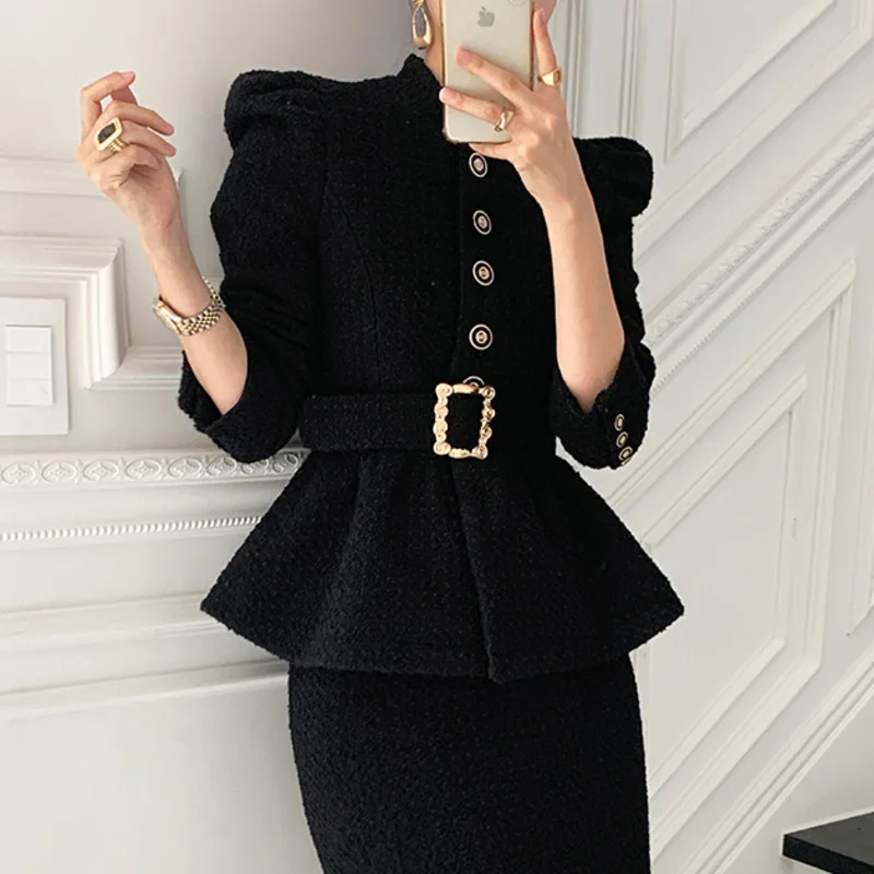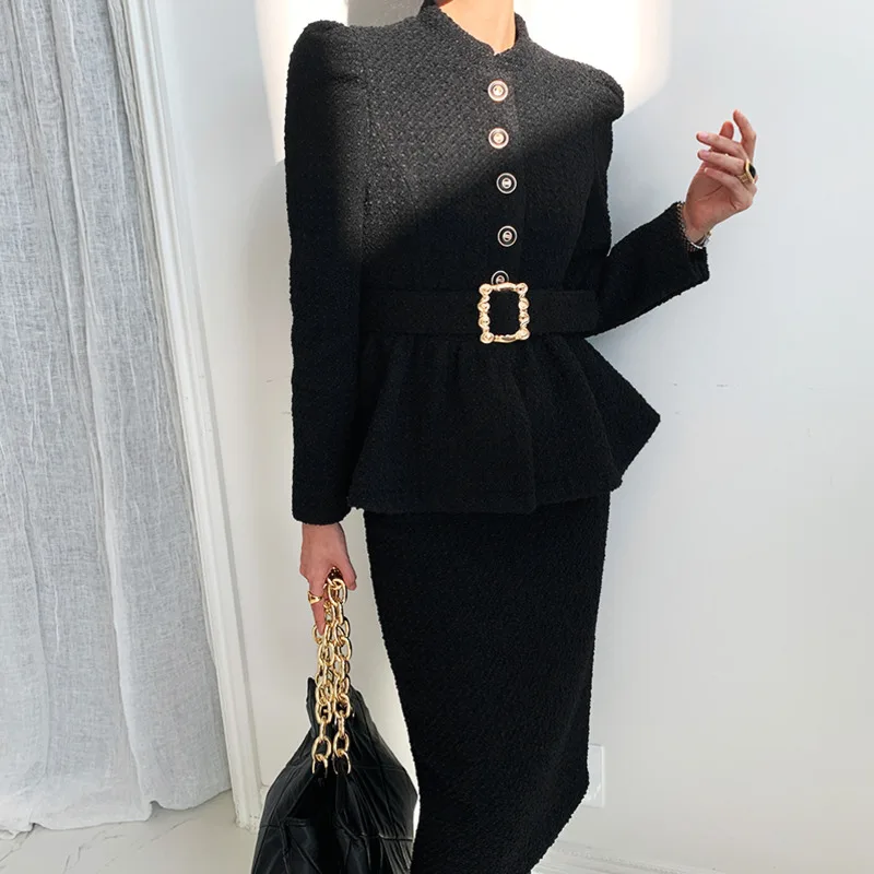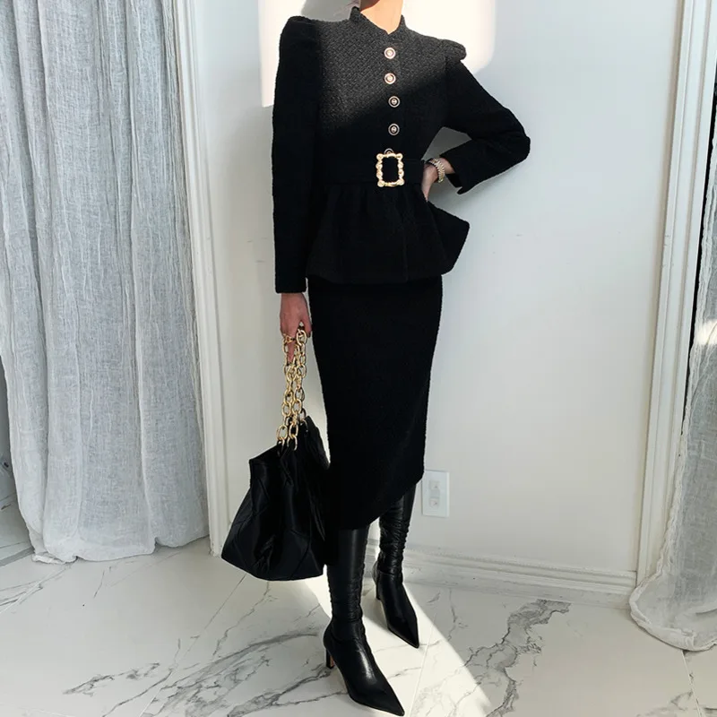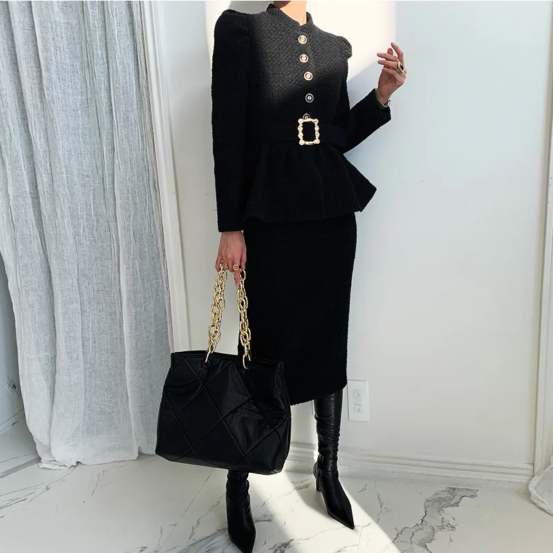 Women’s Tweed Pleated Hem Short Coat And Skinny Skirt Set